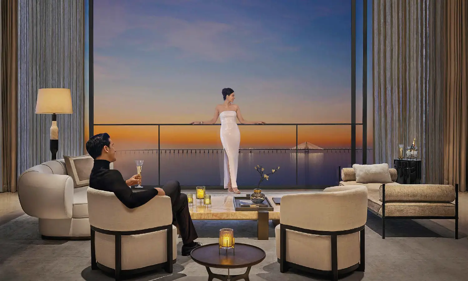 - - Sea & City Views: 180° vistas of Arabian Sea and skyline.